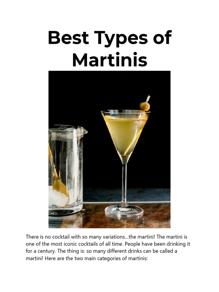 Best Types of Martinis PDF Martini (Cocktail) Drink